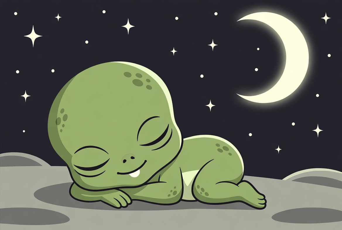 Sleeping Baby Alien on Moon