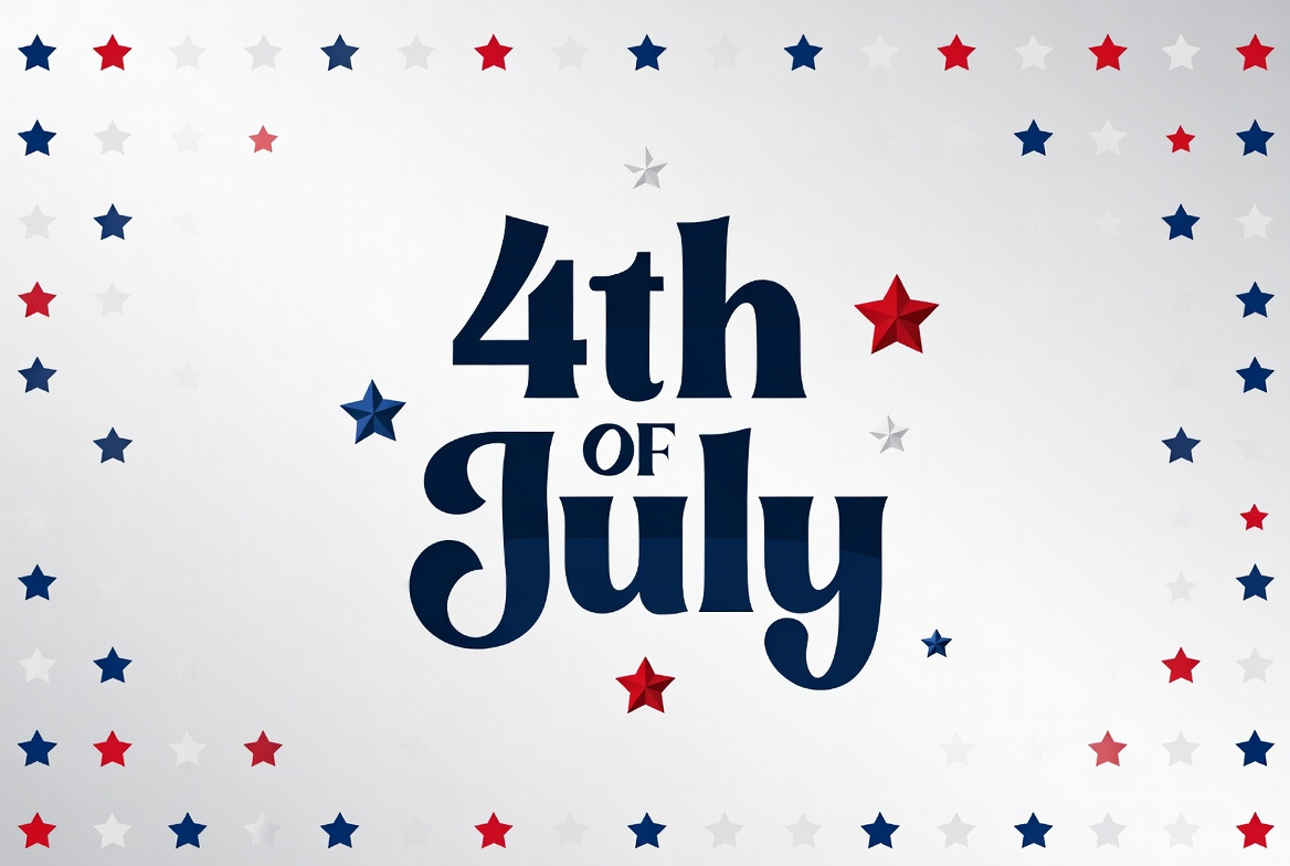 Independence Day, July 4th, USA holiday, banner, blue stars, clipart, festive design, graphic, illustration, isolated background, navy blue text, patriotic, red stars, stars, text, vector art, white background, 4th of July