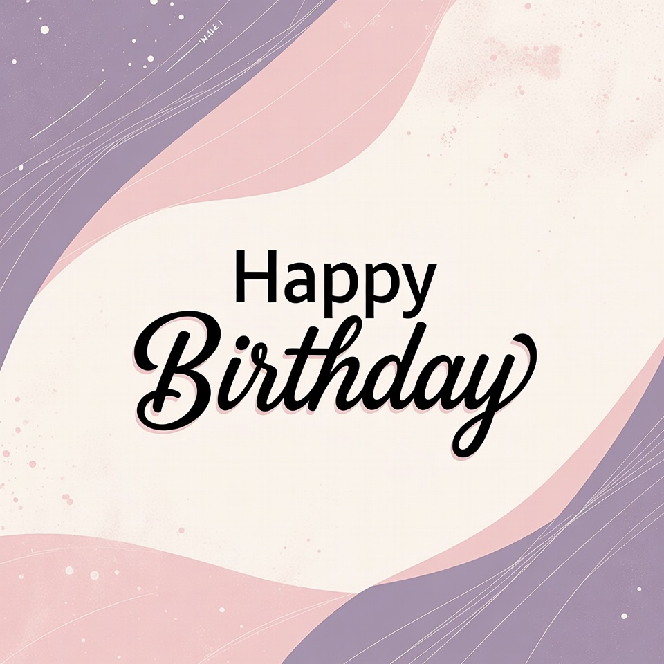abstract waves, birthday, black font, card background, celebration, cursive text, digital art, festive design, graphic design, greeting card, illustration, isolated background, party, pastel colors, pink waves, purple waves, sparkles, stars, vector art, wavy background, happy birthday