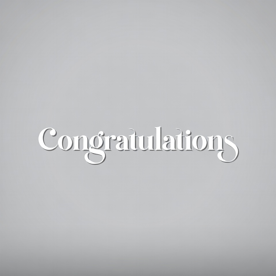 3D text, achievement, award, celebration, clipart, elegant lettering, graphic, gray background, greeting, isolated background, shadowed text, text, white text, congratulations
