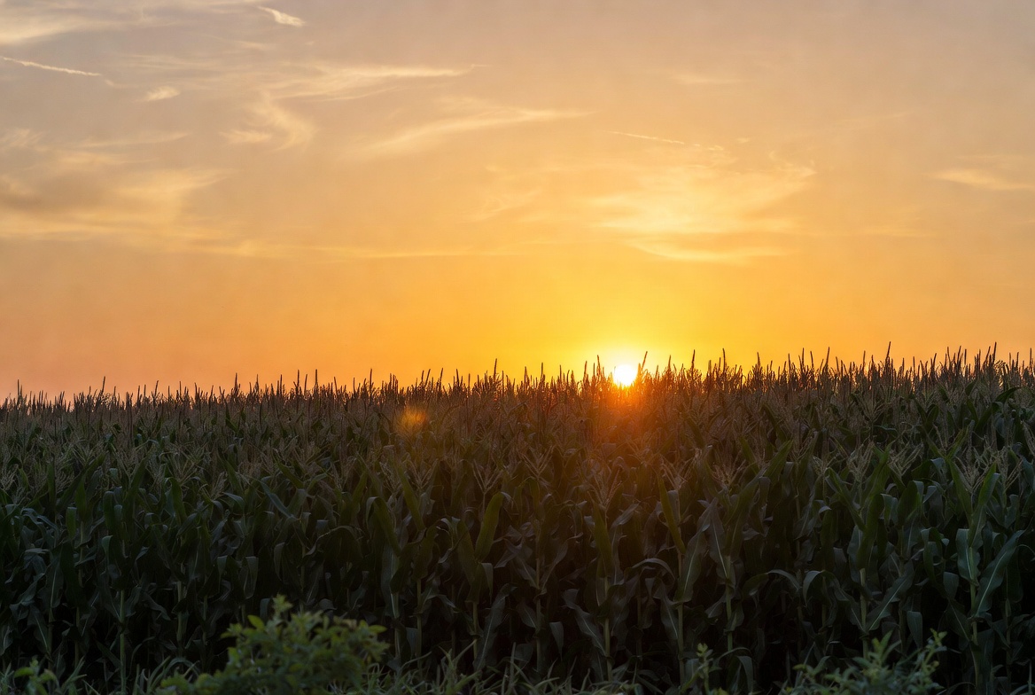 Sunset over cornfield