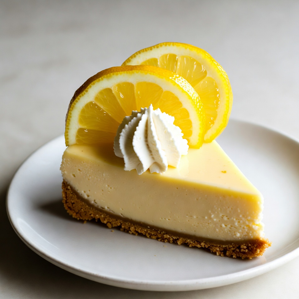 baked good, cheesecake slice, citrus dessert, creamy filling, dessert, food, food photography, fresh lemon, gourmet dessert, graham cracker crust, lemon garnish, lemon wedges, pastry, plated dessert, slice, sweet treat, whipped cream, white plate, yellow dessert, lemon cheesecake