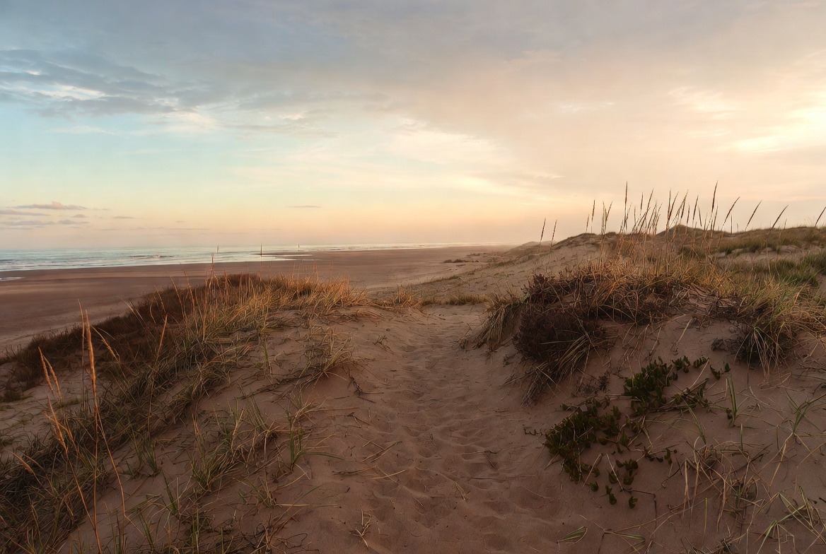 beach grass, beach trail, clouds, coast, dune grass, dunes, evening sky, golden hour, grass, horizon, landscape, nature, ocean, outdoor, sand path, sandy beach, scenery, sea oats, seascape, seaside, shoreline, sky, sunset, tranquil beach, waves, beach