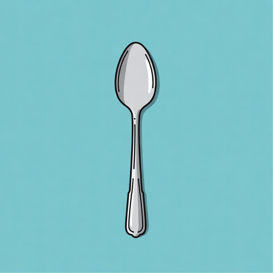 blue background, bowl, clipart, cookware, dining, eating utensil, handle, illustration, isolated background, kitchen utensil, line art, metallic, silver spoon, simple design, tableware, utensil, vector, spoon