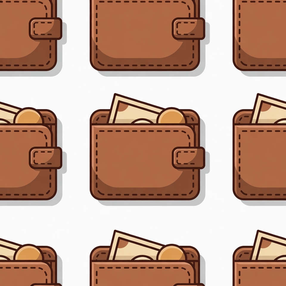 bifold wallet, bills, brown wallet, cash, clipart, closed wallet, coins, currency, finance, flat design, gold coins, illustration, isolated background, leather wallet, money, open wallet, pattern, seamless pattern, vector art, wallet