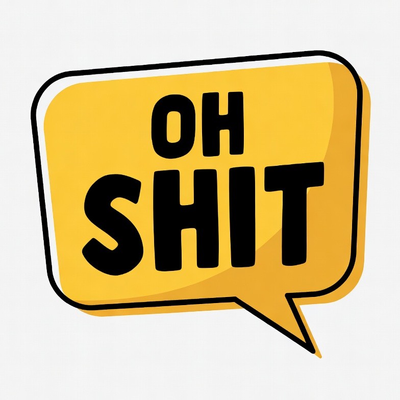 black text, bold text, cartoon, clipart, comic bubble, comic style, exclamation, illustration, isolated background, profanity, speech balloon, speech bubble, vector graphic, yellow bubble, oh shit