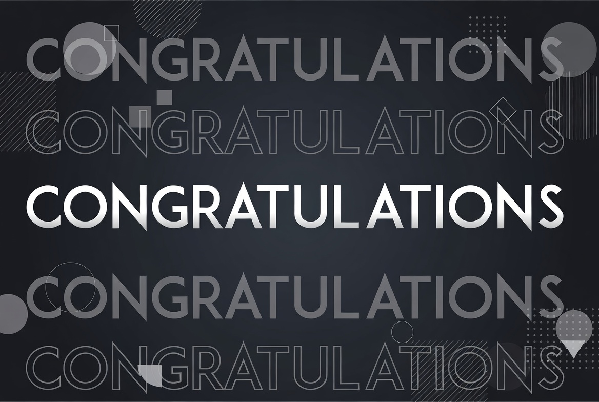 achievement, award, banner, black background, bold letters, celebration, circles, decorative, digital art, event, geometric shapes, graphic, isolated background, lines, modern design, party, poster, text, typography, vector style, white font, congratulations
