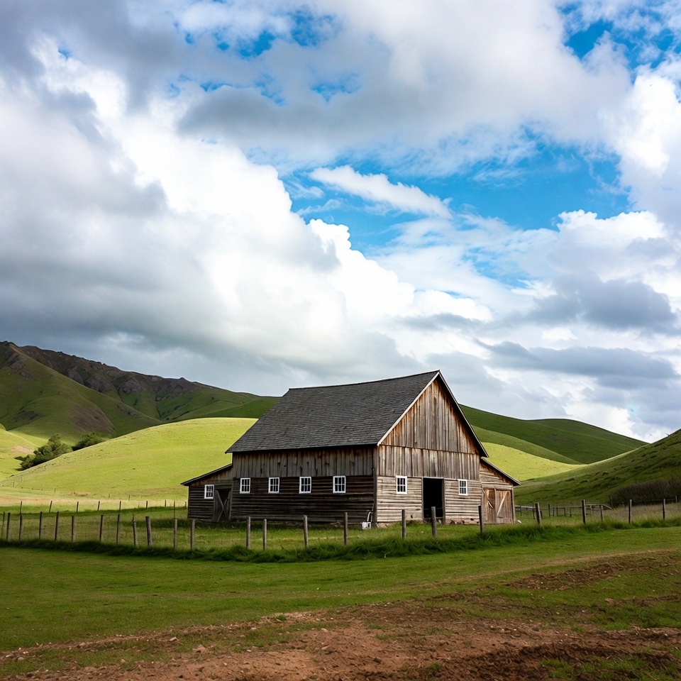 Wooden Barn in Green Rolling Hills