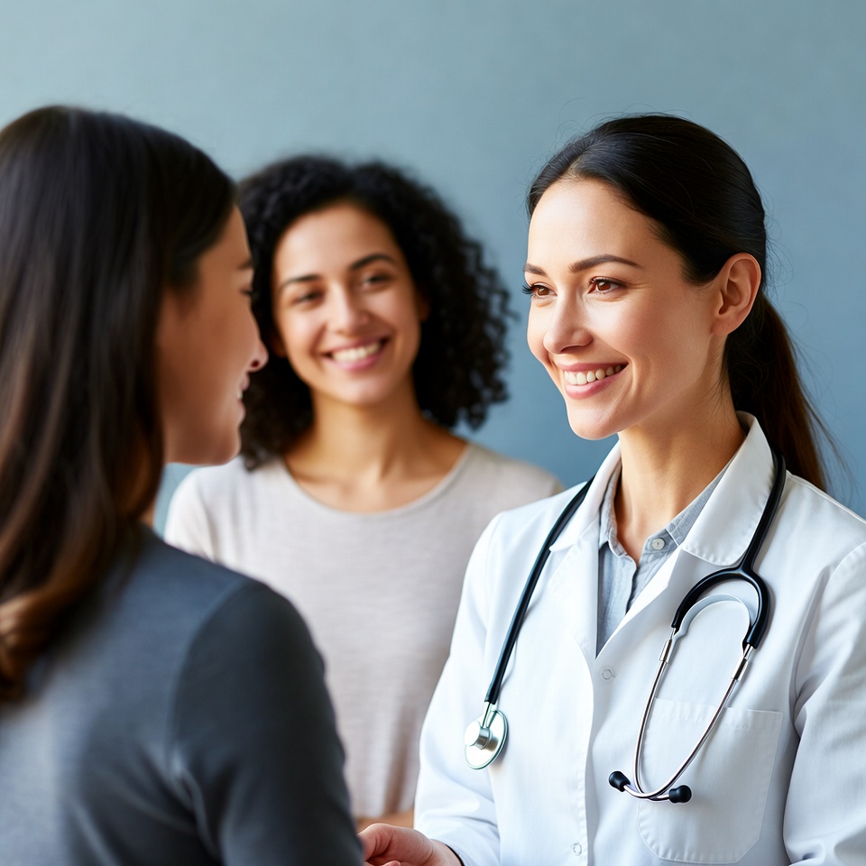 Doctor consulting two diverse women patients