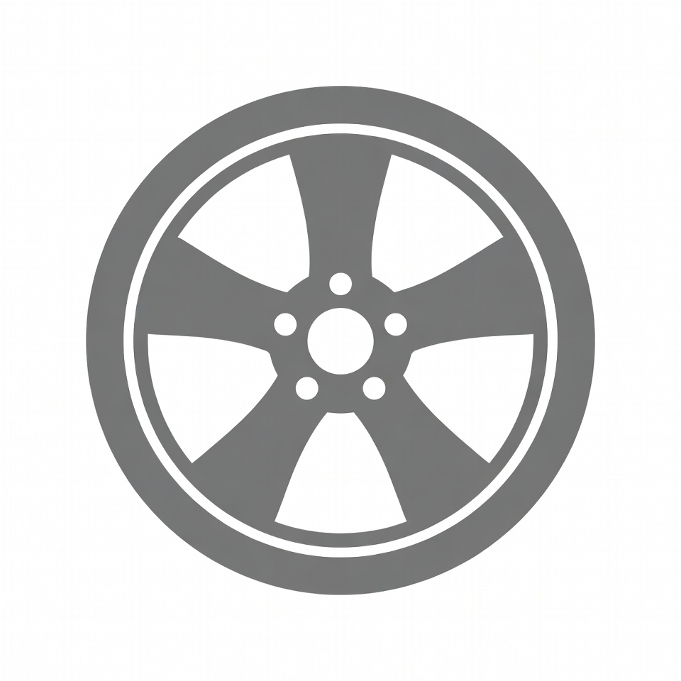 alloy wheel, automotive, clipart, five spokes, flat design, gray, icon, illustration, isolated background, lug nuts, monochrome, rim, silhouette, simple, tire, vector, vehicle wheel, wheel, car wheel