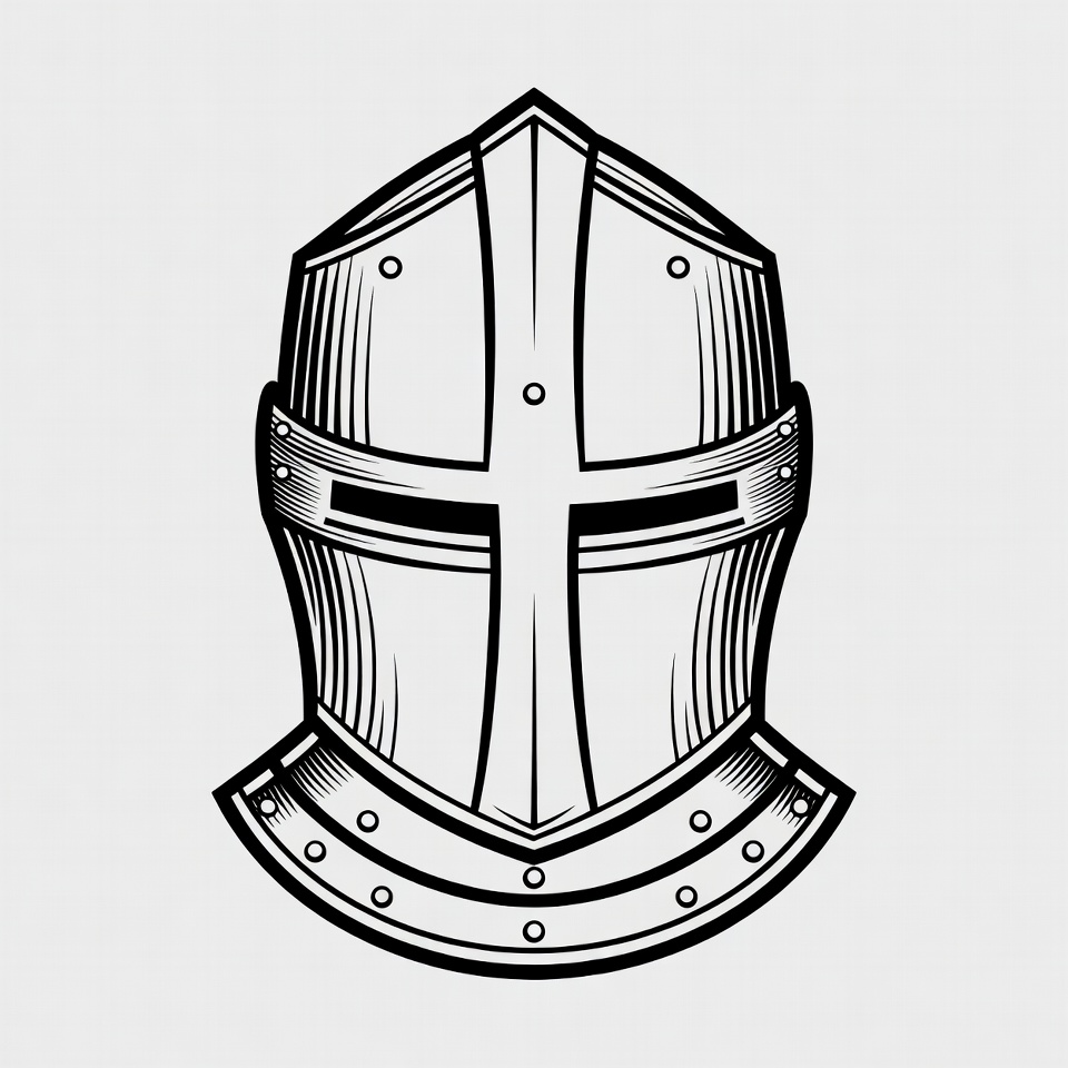 armor, black and white, clipart, crusader helmet, engraving style, helmet illustration, historical helmet, isolated background, knight armor, line art, medieval helmet, steel helmet, vector art, warrior helmet, knight helmet