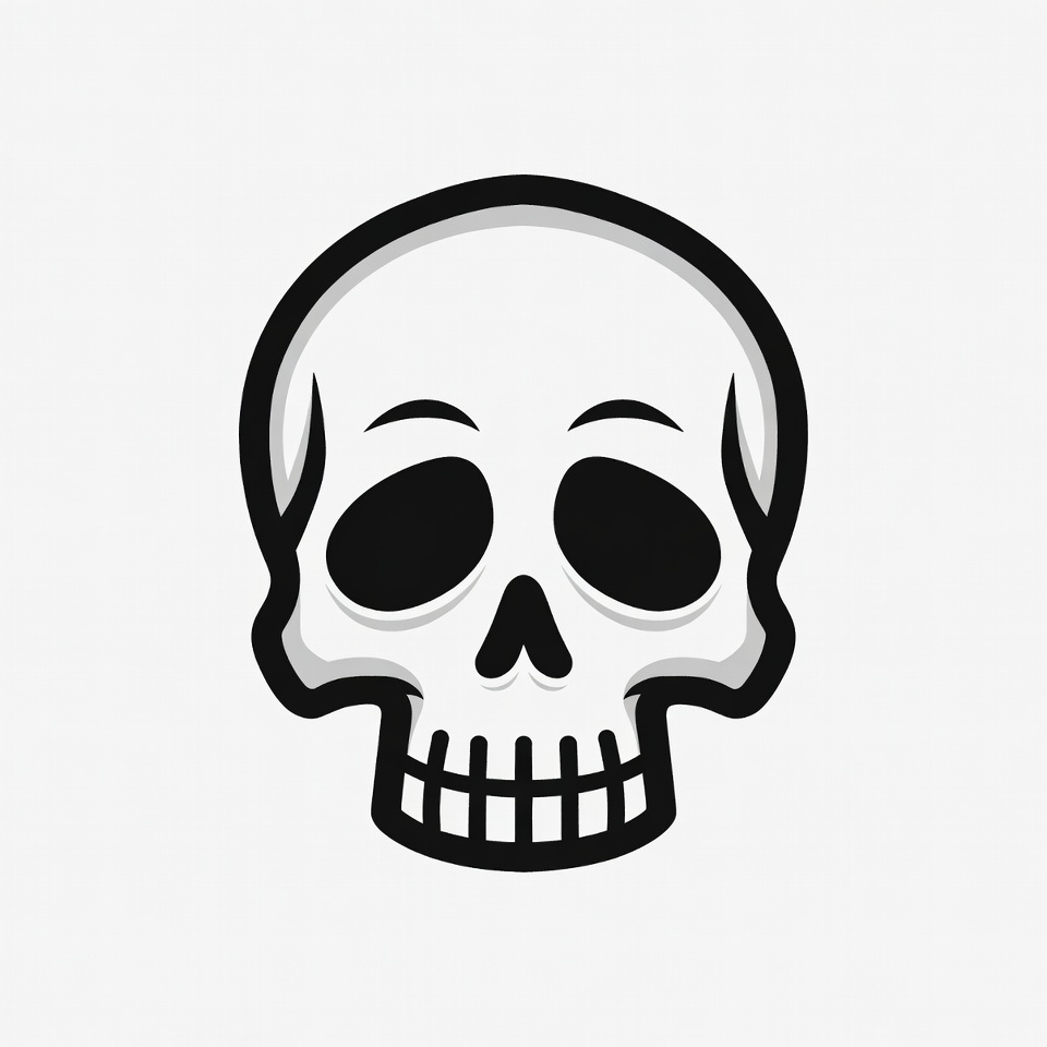 Halloween, black white, bones, cartoon skull, clipart, death symbol, emoji skull, face, grinning skull, isolated background, outline, skull illustration, spooky, vector skull, skull