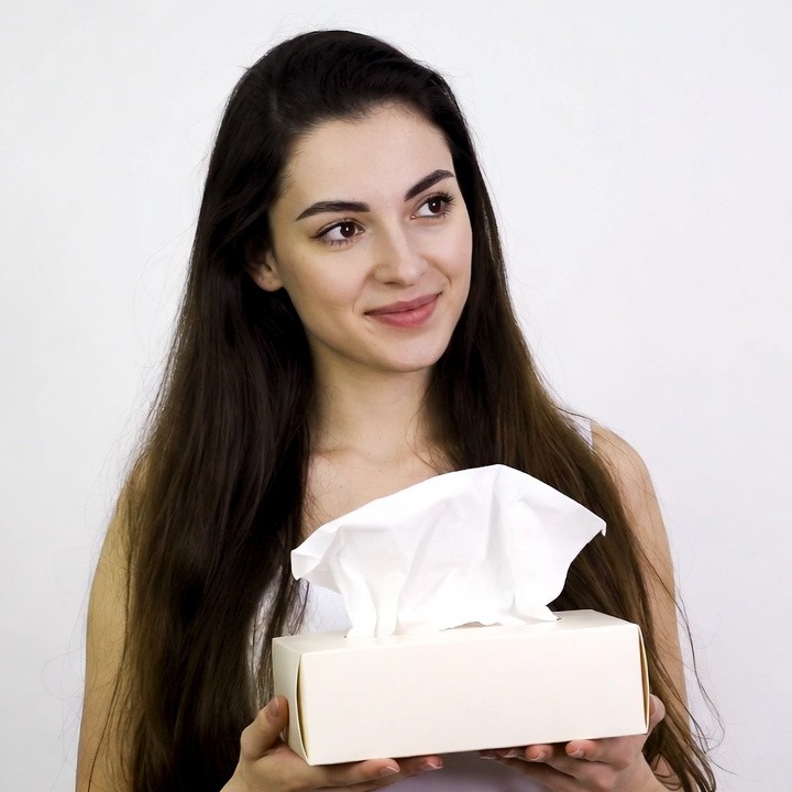 Woman holding tissue box