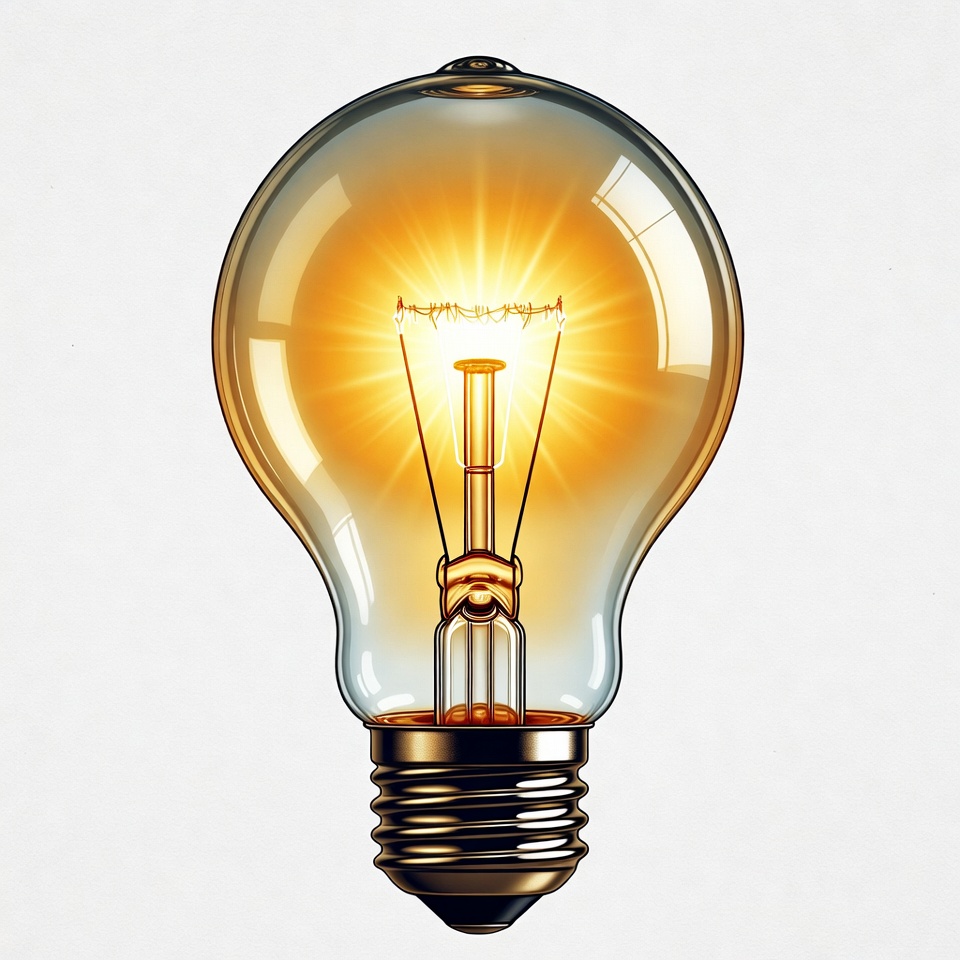 bright light, clipart, electricity, filament, glass bulb, glowing bulb, golden light, idea symbol, illustration, incandescent bulb, isolated, screw base, transparent glass, vintage bulb, white background, yellow glow, light bulb
