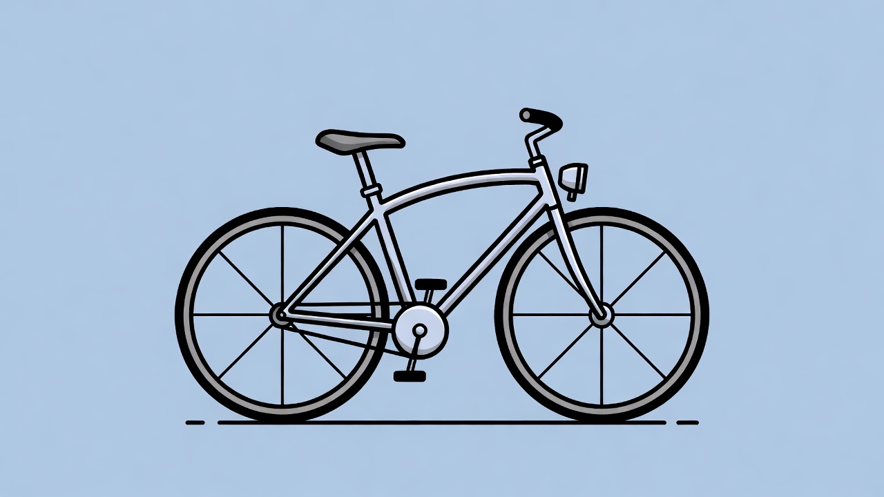 bike, blue background, clipart, cycling, flat design, frame, gray lines, headlight, icon, illustration, isolated background, line art, minimalist, outline bike, pedals, saddle, simple drawing, vector, wheels, bicycle