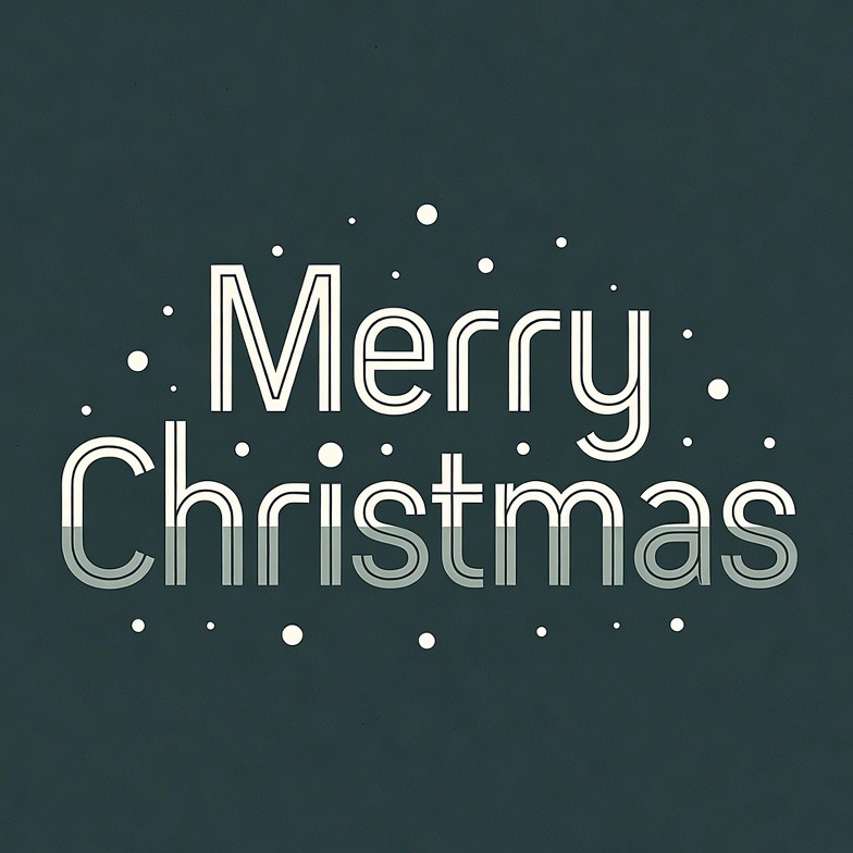 Christmas greeting, Christmas illustration, bold font, clipart, dark green background, festive design, gradient text, holiday text, isolated background, snowflakes, vector art, white text, winter holiday, Merry Christmas