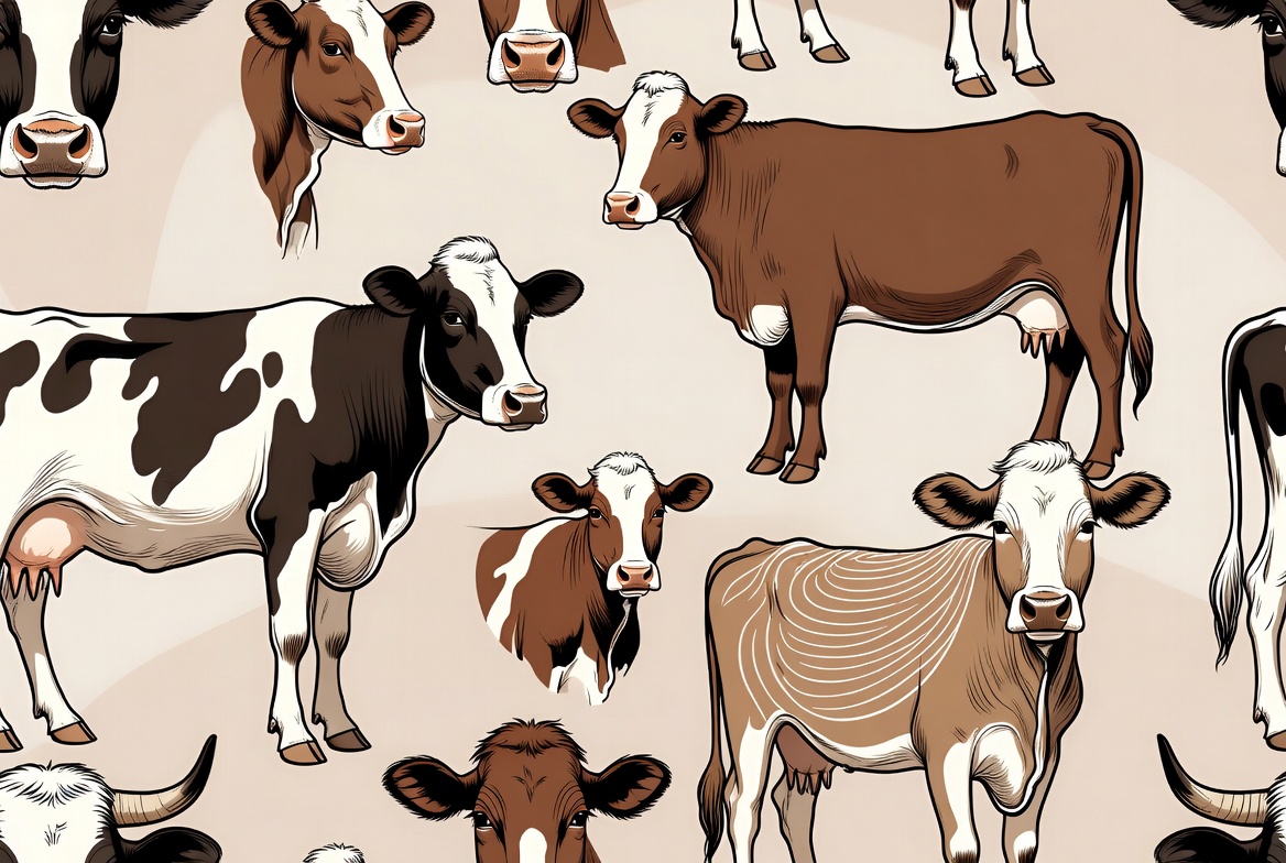 Holstein cows, animals, beige background, black white cows, bovine, brown cows, cartoon cows, clipart, cow heads, cow illustration, cow pattern, dairy cows, farm animals, isolated background, line art, livestock, milk cows, repeating pattern, seamless pattern, standing cows, vector illustration, cows