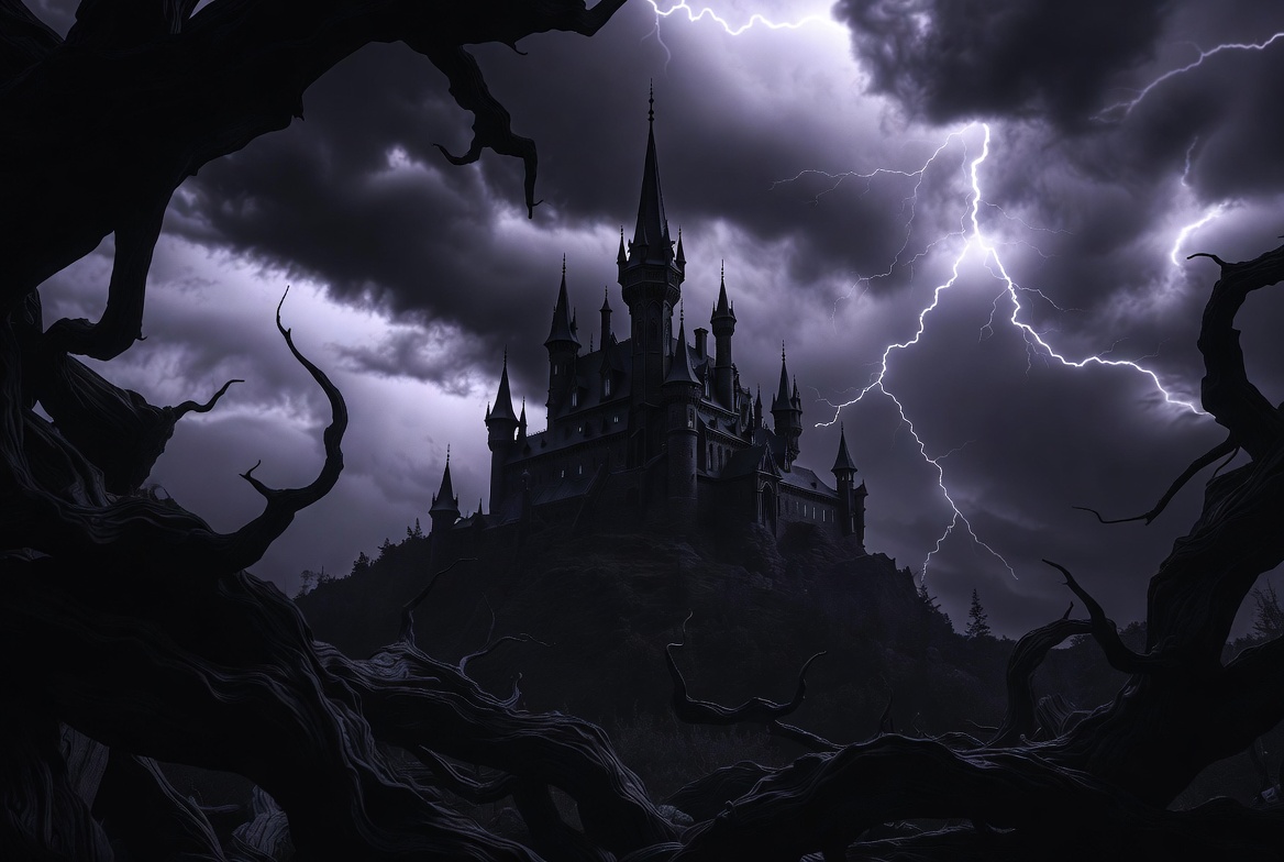 Dark Castle in Lightning Storm