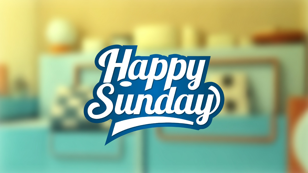 blue text, blurred background, bold font, clipart, digital art, festive design, greeting card, holiday graphic, illustration, motivational text, playful lettering, sunday greeting, sunday quote, teal background, text graphic, vector design, weekend message, white text, yellow background, happy sunday
