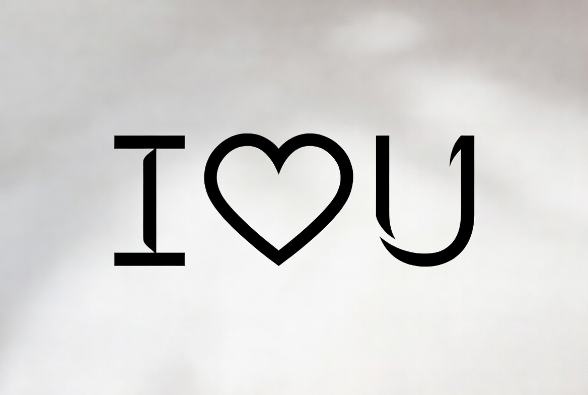 black text, blurred background, bold font, gray background, heart graphic, heart symbol, love message, love text, outline letters, romantic graphic, stylish letters, text art, typography, valentine design, I love you