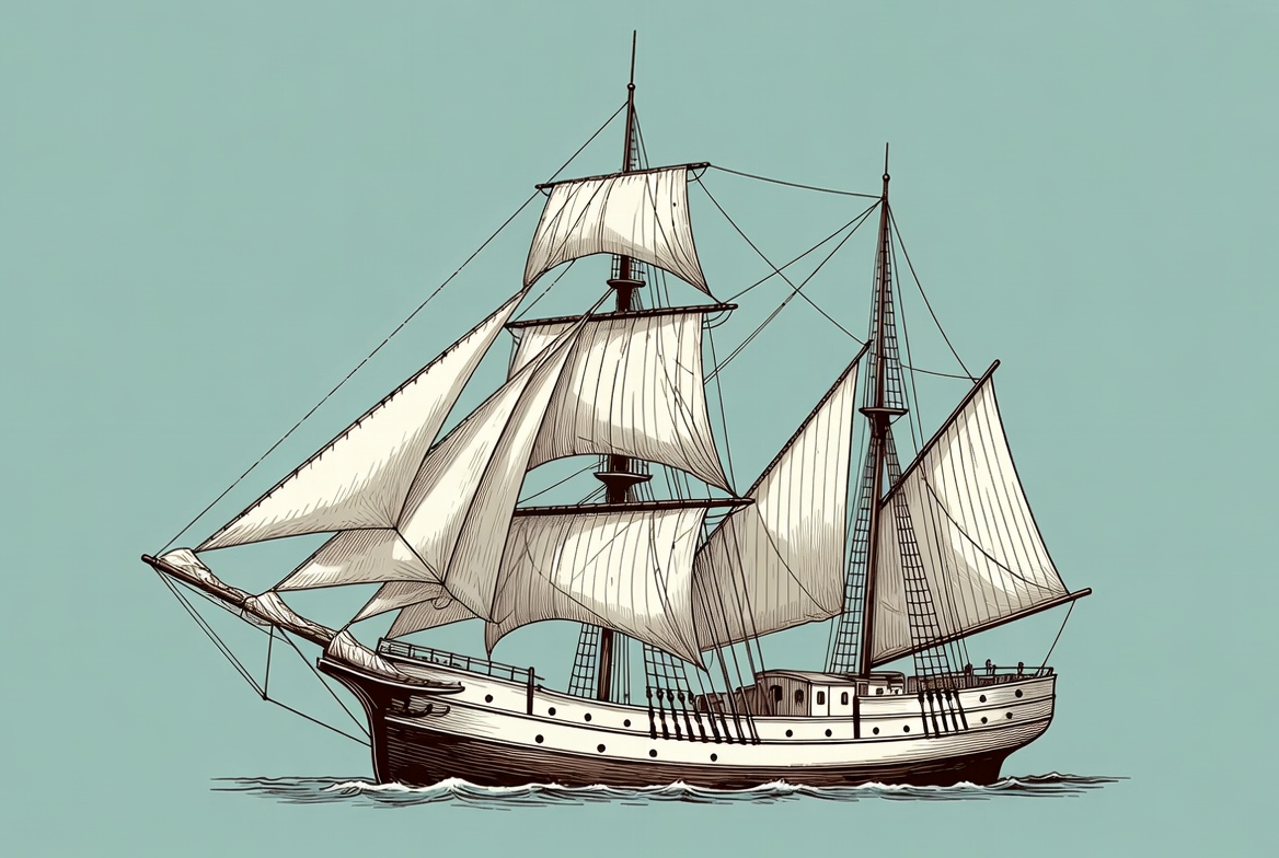Sailing Ship Illustration on Sea