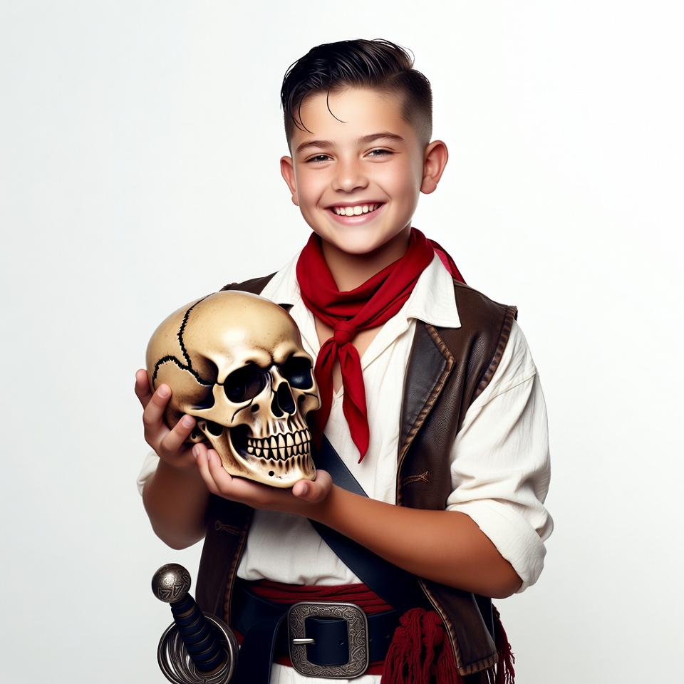 Boy pirate holding skull