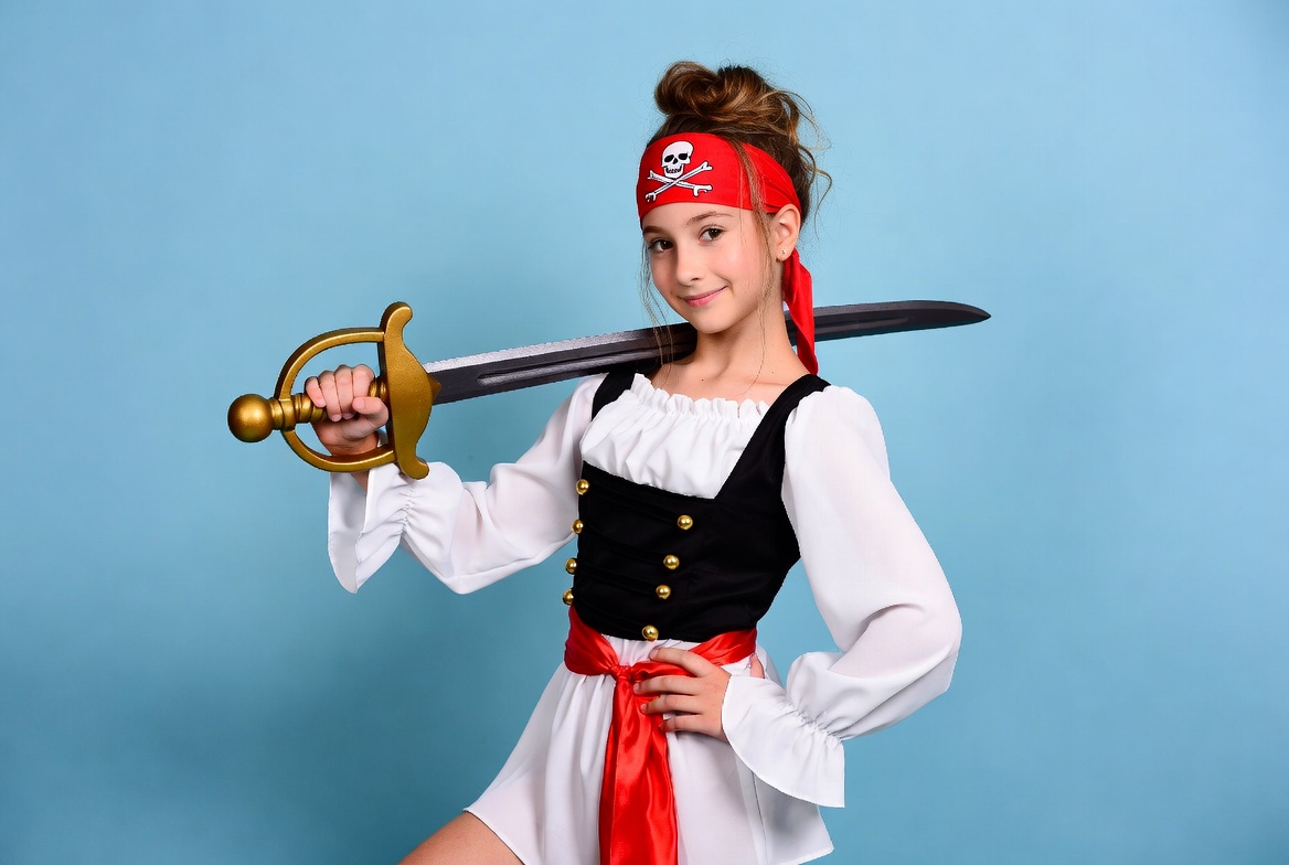Girl in pirate costume holding sword