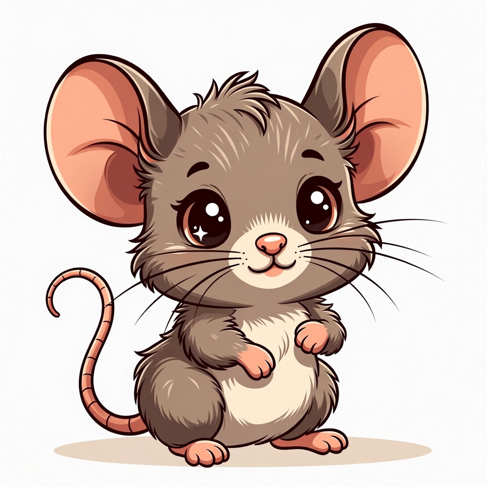 adorable mouse, animal illustration, baby mouse, big eyes, cartoon mouse, chibi mouse, clipart, curly tail, fluffy fur, gray mouse, isolated background, kawaii mouse, mouse illustration, pink ears, rodent, smiling mouse, whiskers, cute mouse