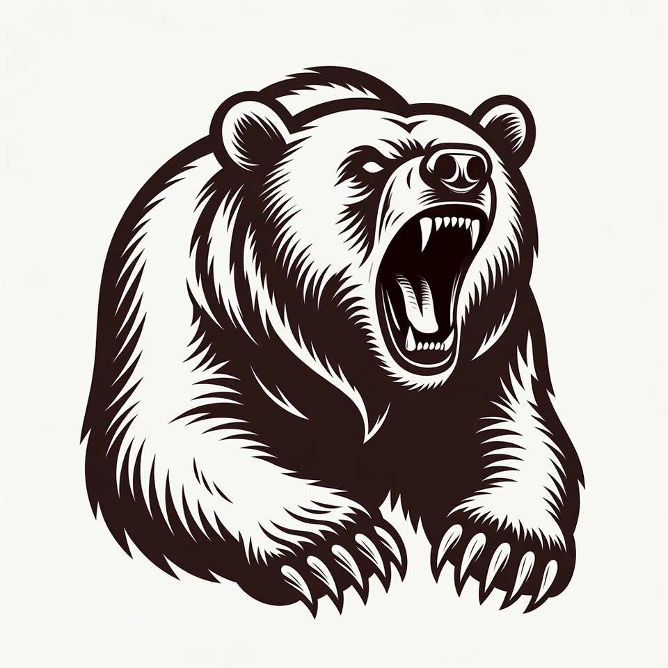 aggressive animal, angry bear, animal illustration, bear clipart, bear face, bear head, bear illustration, bear roar, black white, claws, engraving, fangs, fierce bear, fur, grizzly bear, isolated background, line art, mammal, predator, roaring bear, snarling bear, vector art, wild animal, wildlife, bear