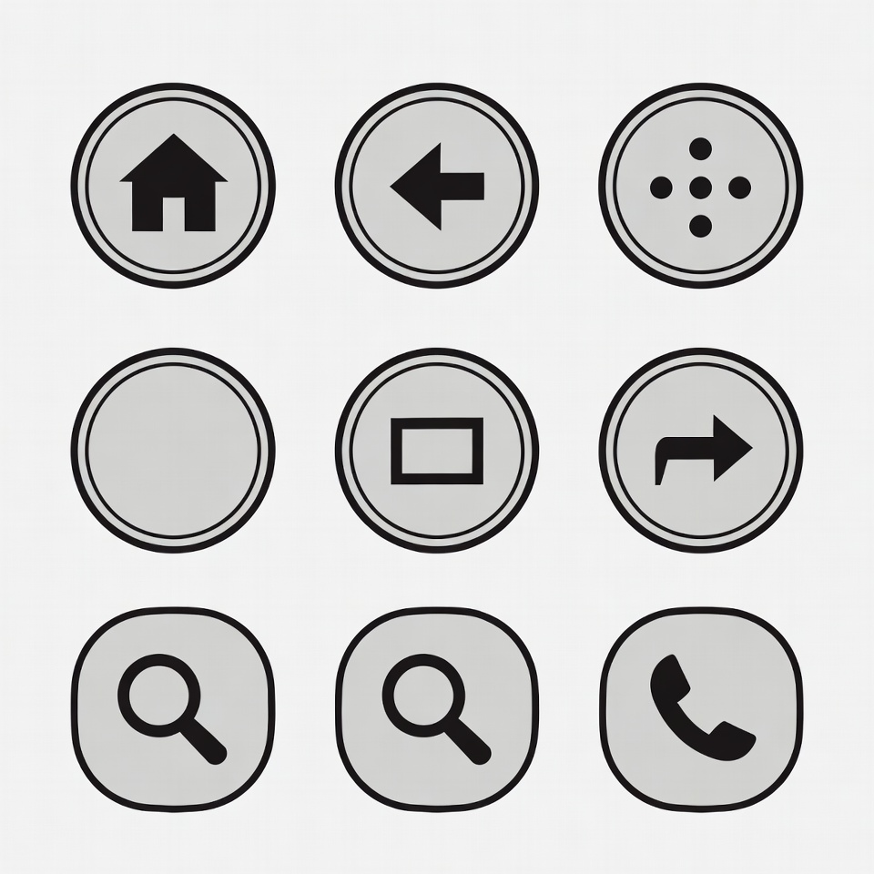 UI icons, app icons, arrow icon, black icons, button icons, circle icon, circular buttons, gray background, home icon, interface icons, left arrow, line art, magnifying glass, menu dots, minimalist icons, navigation icons, phone icon, right arrow, search icon, simple icons, square icon, symbols, vector icons, web icons, icons