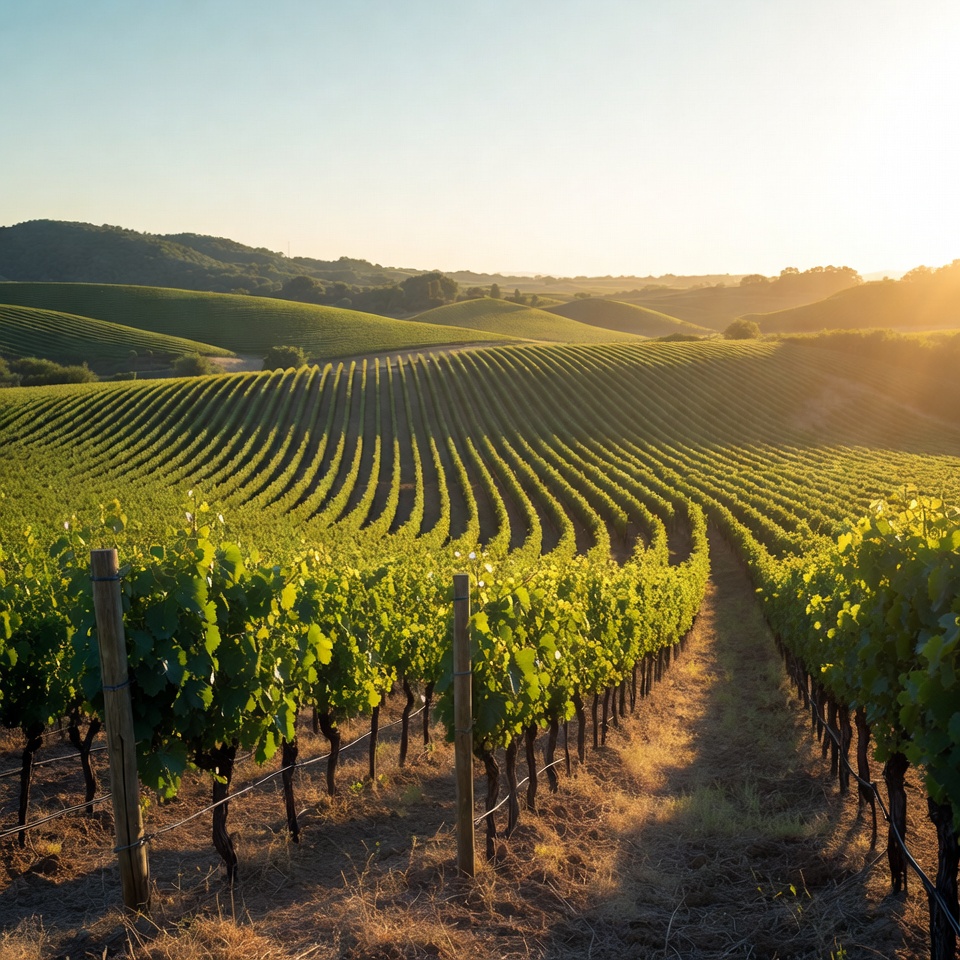 Vineyard Rows at Sunset