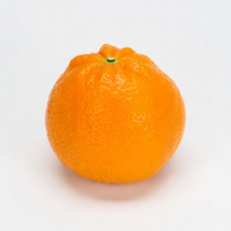 citrus fruit, fresh orange, fruit, green stem, healthy fruit, isolated background, orange color, orange fruit, ripe orange, single fruit, tangerine, textured peel, white background, mandarin orange