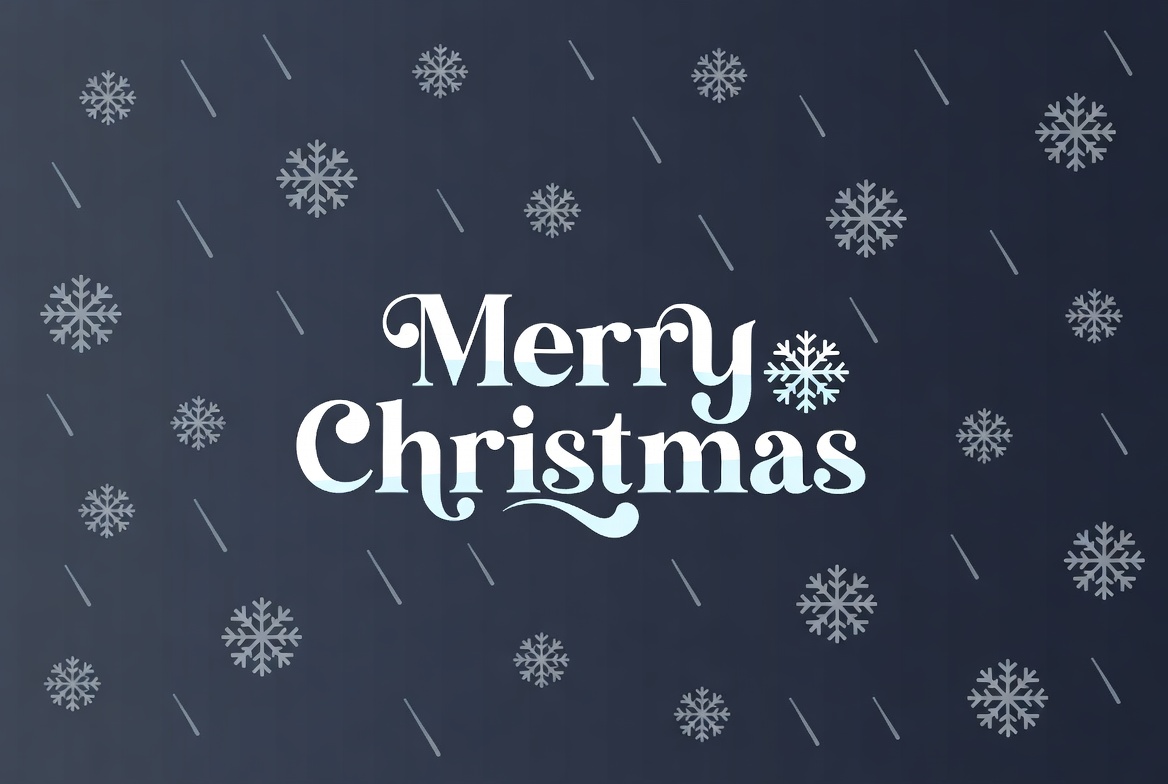Christmas, Christmas card, banner, celebration, clipart, cursive font, design, festive, graphic, greeting, holiday, illustration, isolated background, navy background, season, snowflakes, snowy, white text, winter, Merry Christmas