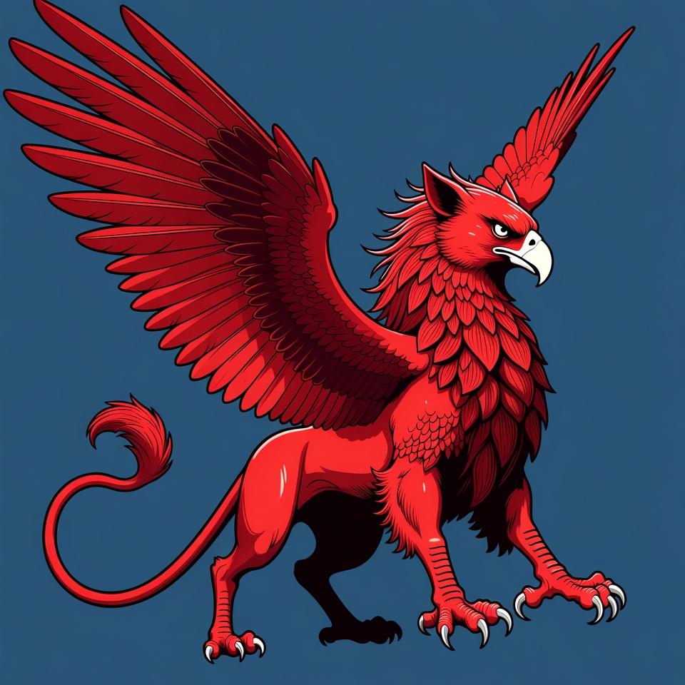 Red Griffin Illustration with Spread Wings