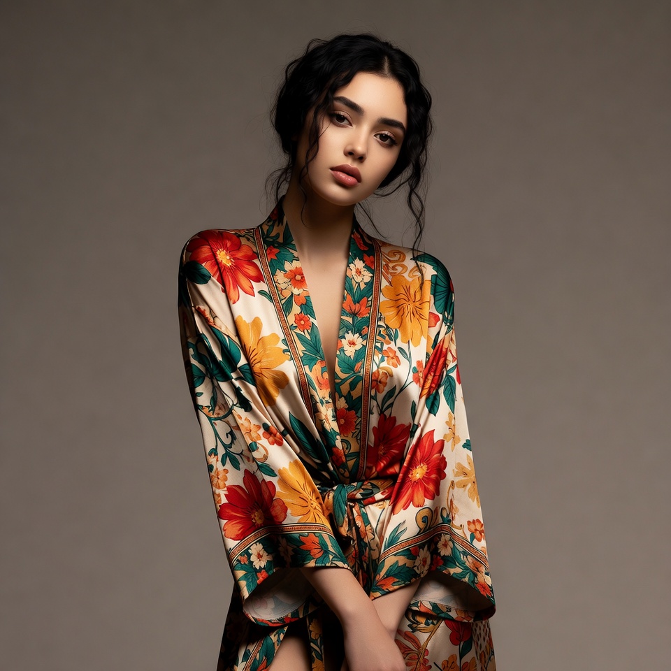 Woman in Floral Silk Robe