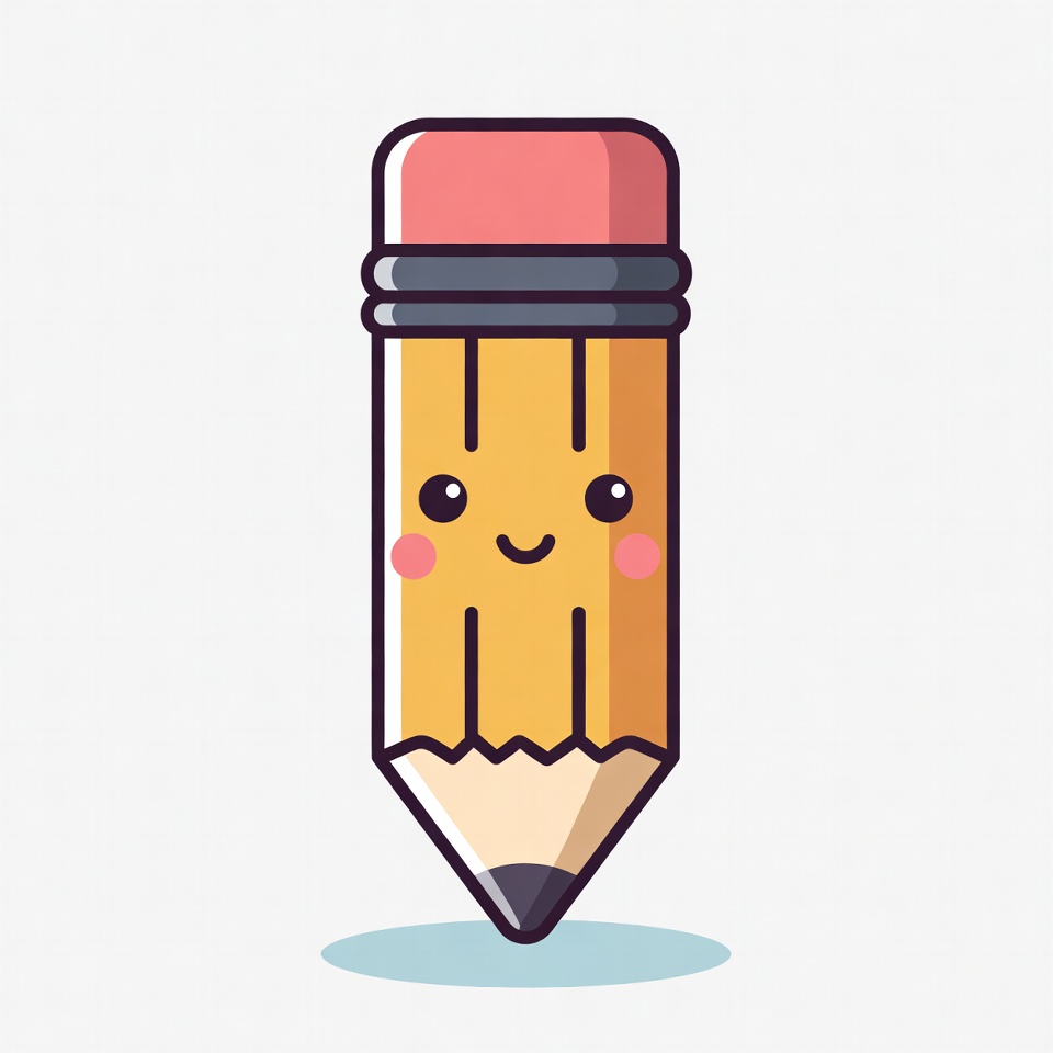 adorable character, big eyes, blush cheeks, cartoon, clipart, cute pencil, flat design, fun drawing, illustration, isolated background, kawaii, red eraser, school supply, simple background, smiling face, stationery, vector art, yellow pencil, pencil