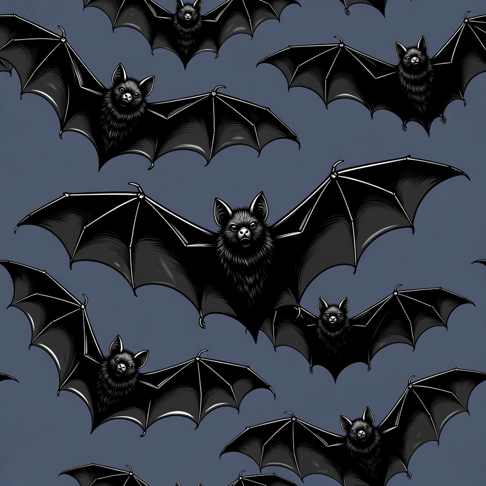 Black Bats Flying on Dark Blue Background