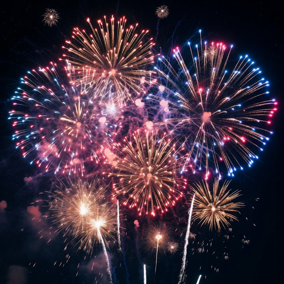 Colorful Fireworks Exploding in Night Sky