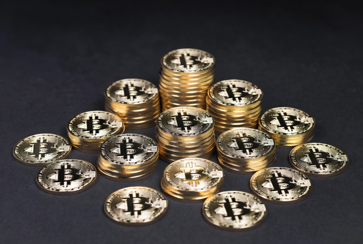 3D render, bitcoin symbol, black background, blockchain, coins, crypto, cryptocurrency, digital currency, finance, gold coins, investment, isolated, metallic, money, pile, pyramid, shiny, stacks, wealth, bitcoin
