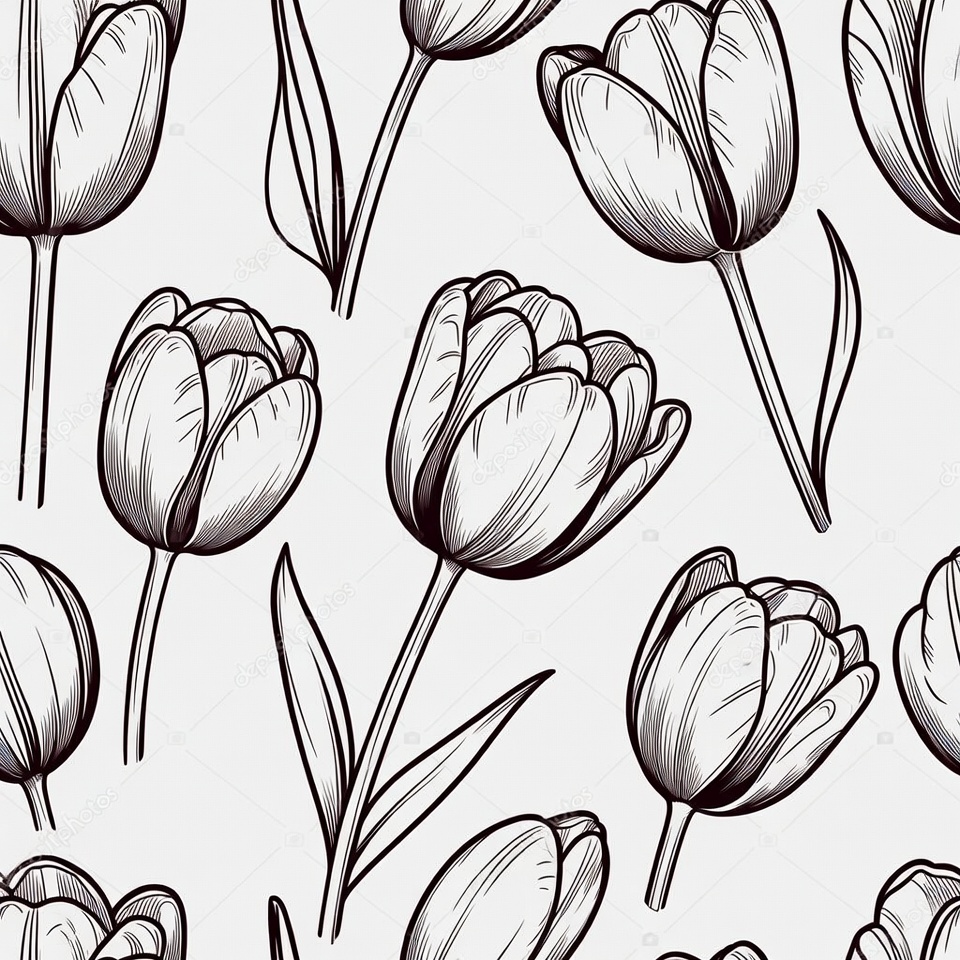 Line Art Tulip Flowers Pattern