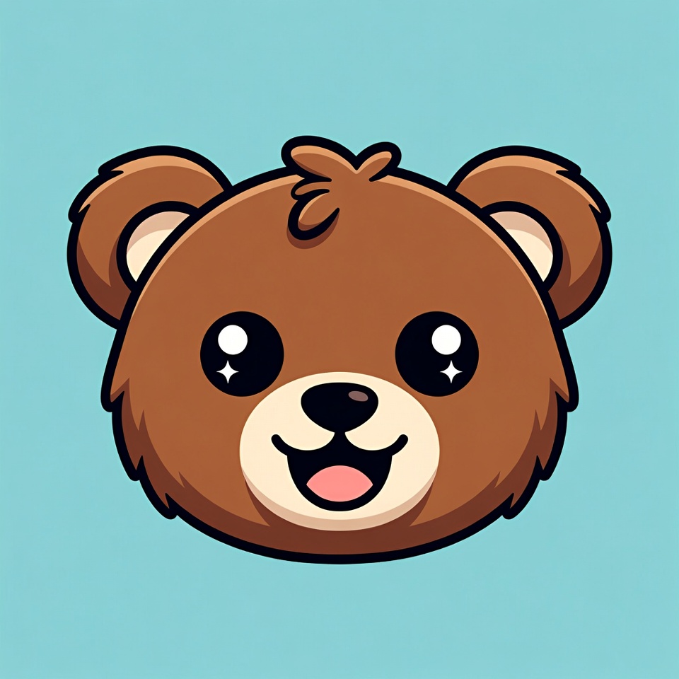 animal face, big eyes, brown bear, cartoon bear, chibi bear, clipart, fluffy fur, happy bear, illustration, isolated background, kawaii bear, smiling bear, teddy bear style, vector art, cute bear