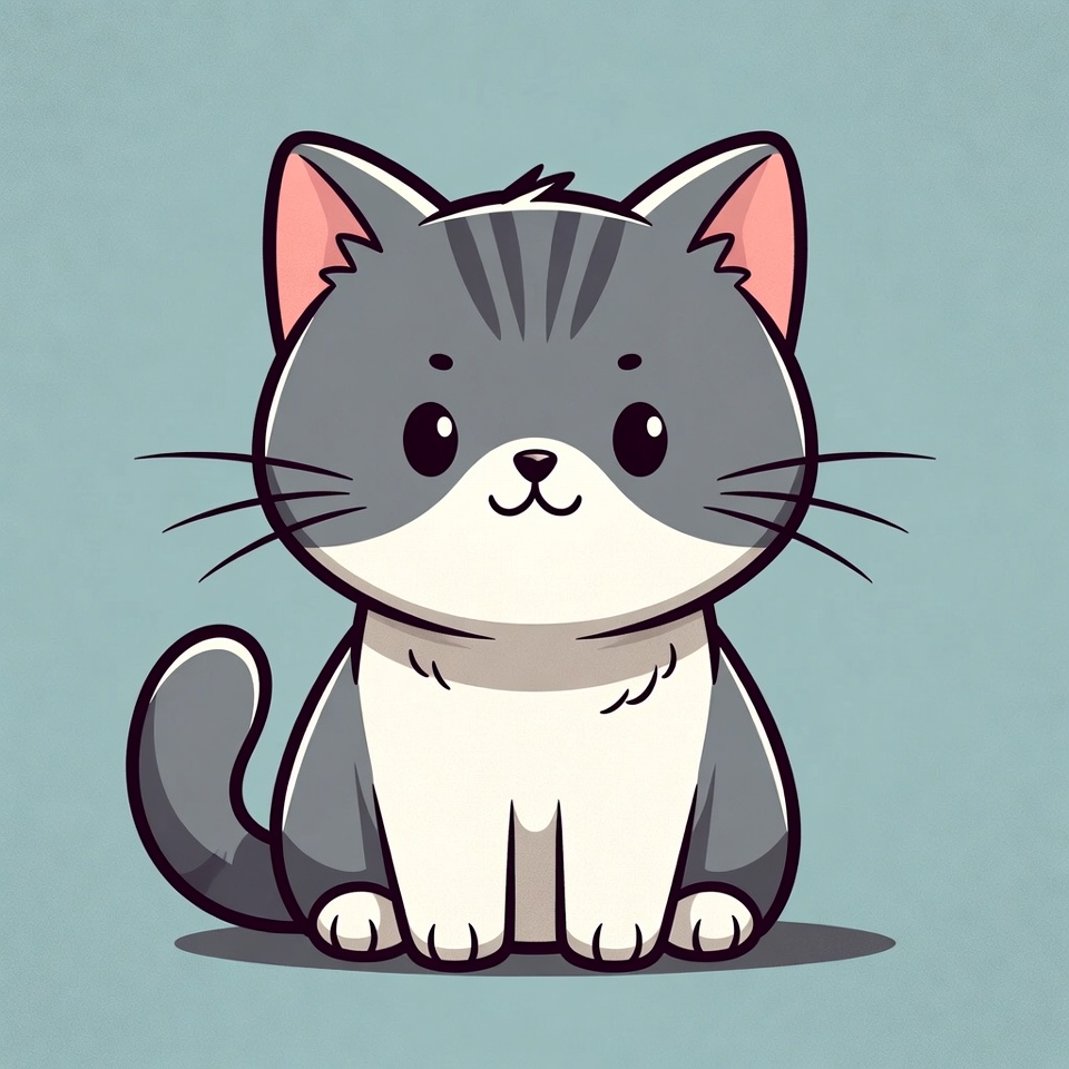 adorable kitten, animal, anime cat, big eyes, cartoon cat, chibi cat, clipart, fluffy cat, gray cat, illustration, isolated background, kawaii cat, kitten, pet, pink ears, sitting cat, smiling cat, tabby cat, white belly, cute cat