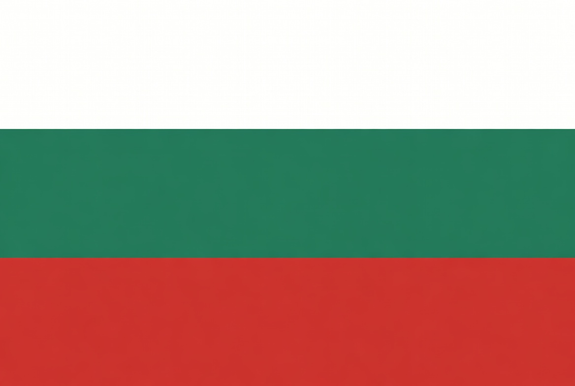 The flag of Bulgaria features three horizontal stripes. The top and bottom stripes are green, while the middle stripe is red. It is displayed against a plain white background.