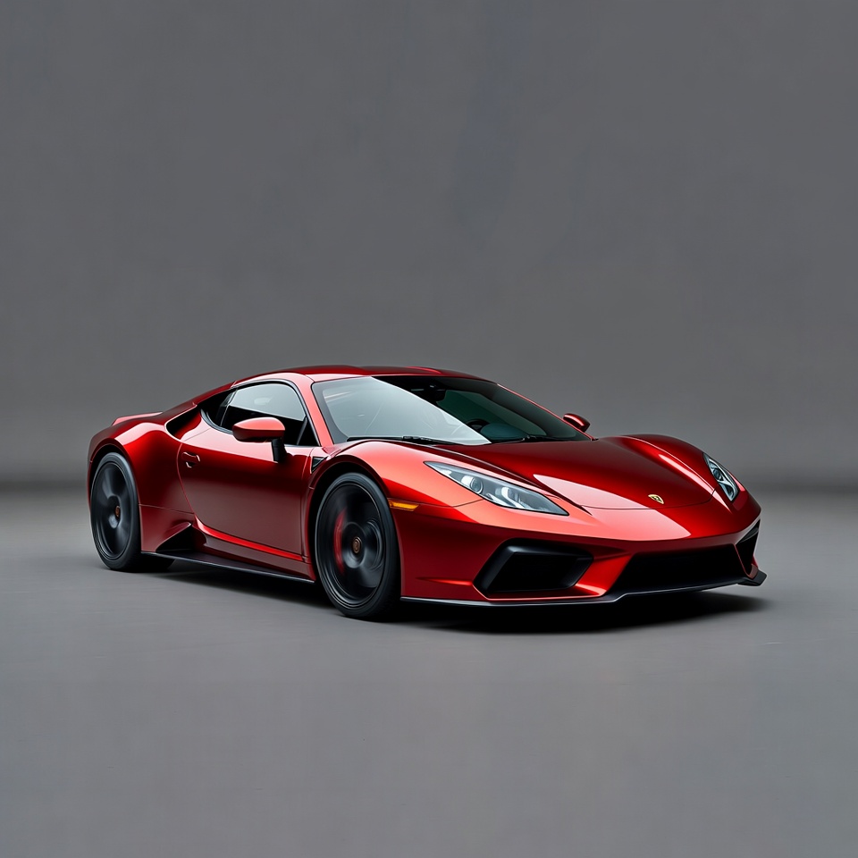 aerodynamic design, air intakes, alloy rims, angular lines, automotive, black wheels, coupe, exotic car, front view, gray background, headlights, high performance, low profile, luxury car, red car, red paint, sports car, supercar, tinted windows, Lamborghini