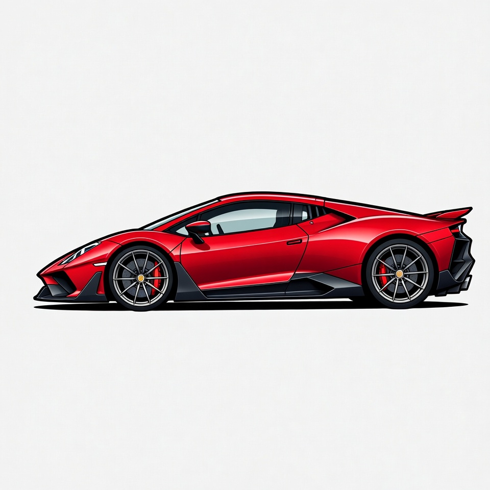 Huracan STO, Italian car, aerodynamic, air intakes, alloy wheels, brake calipers, clipart, exotic car, fast car, illustration, isolated background, luxury car, performance car, rear wing, red car, side view, sports car, supercar, vector art, Lamborghini