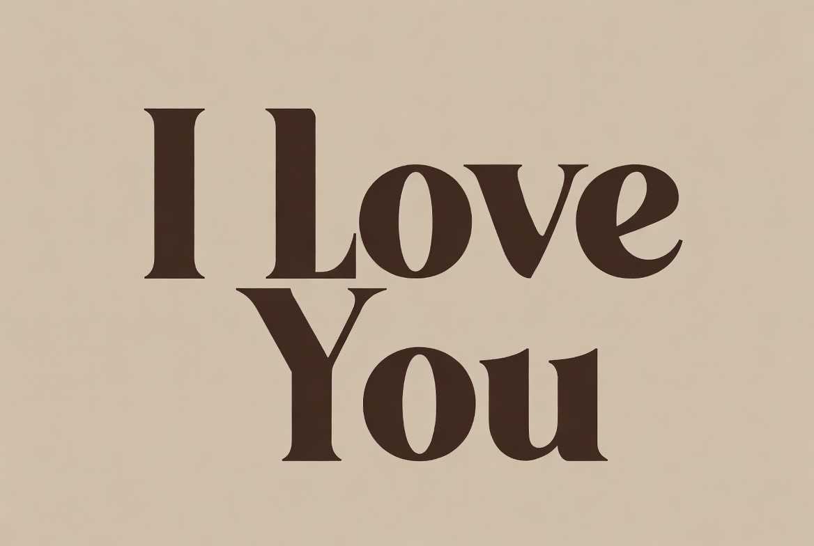 Bold brown 'I Love You' text is centered on a beige background. The letters feature a thick, elegant serif font. The design is simple and isolated.