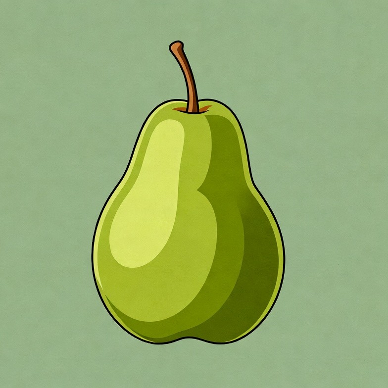 cartoon, clipart, fruit, glossy, green background, green pear, illustration, isolated background, ripe fruit, shaded, simple, stem, vector, pear