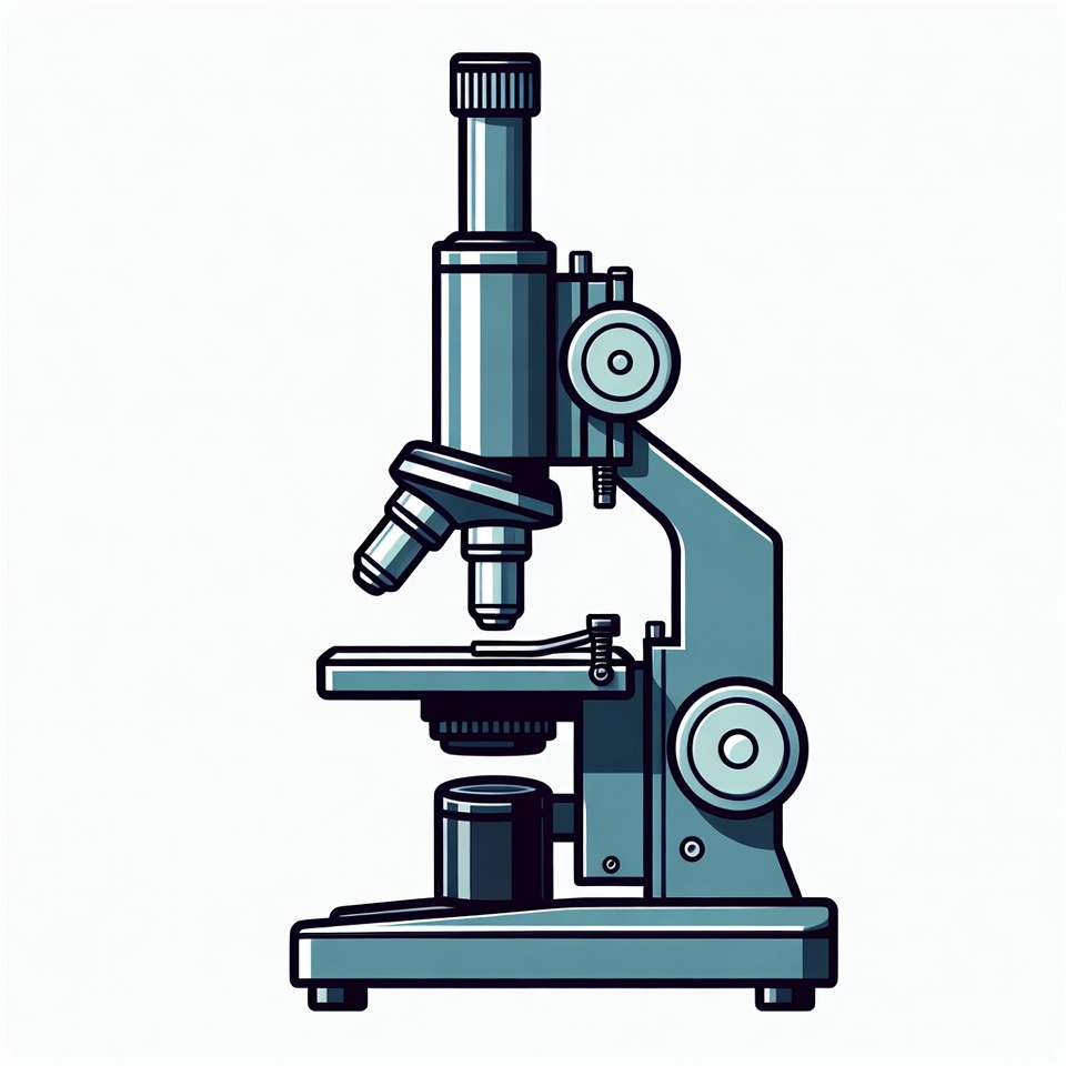 biology, blue tones, clipart, compound microscope, eyepieces, illustration, isolated background, knobs, laboratory equipment, line art, objective lenses, research, science tool, scientific instrument, stage, microscope
