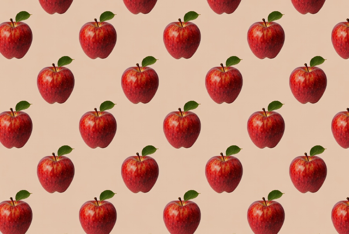 apple arrangement, apple grid, apple leaves, apple pattern, apple texture, apple wallpaper, apples, beige background, fresh apples, fruit design, fruit grid, fruit pattern, glossy apples, green leaves, healthy fruit, isolated background, red fruit, repeating pattern, seamless pattern, red apples