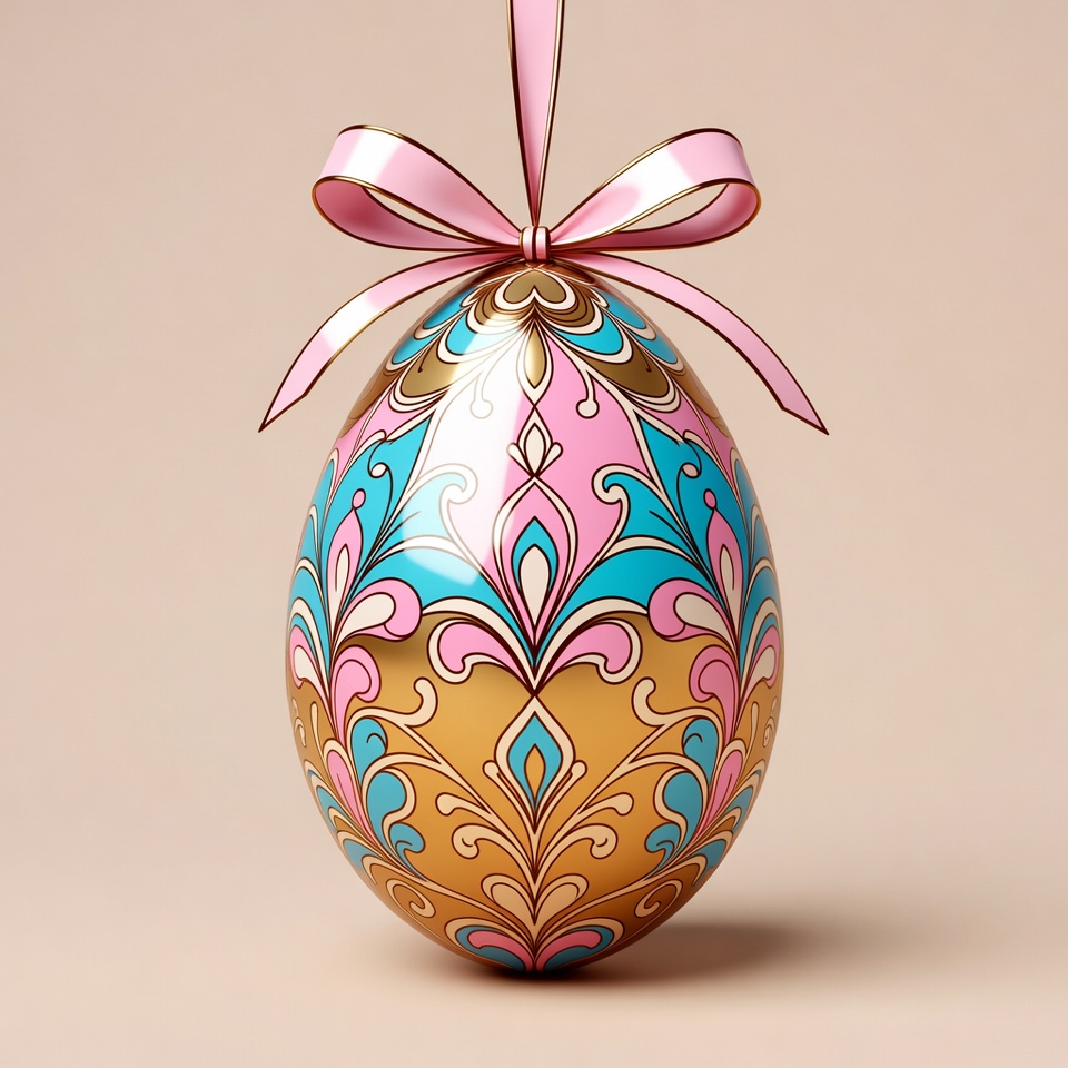 Decorated Easter Egg with Pink Ribbon